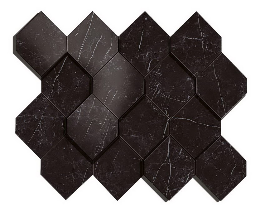 Мозаика Nero Marquina Mosaico Esagono 3D (AS4B) 28,2x35,3
